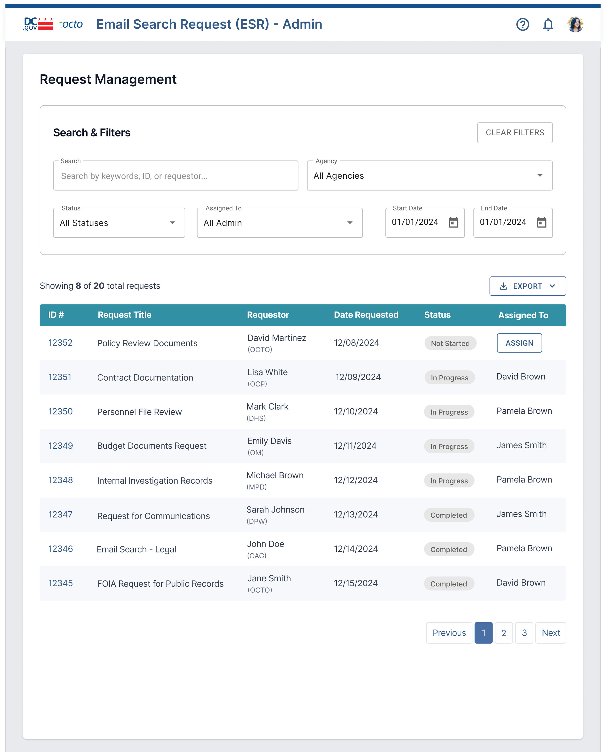 Enhanced Request Tracking: Administrators can now gain real-time visibility into the status of all requests, including which requests are pending assignment, in progress, or completed.