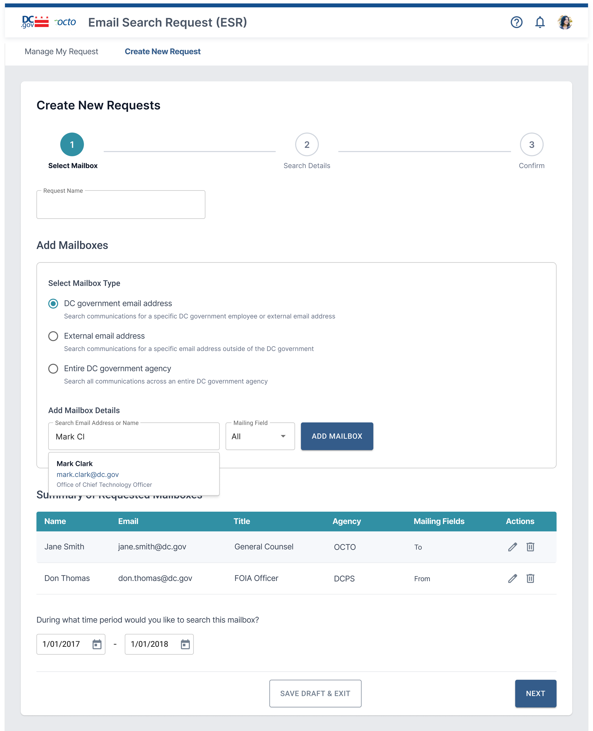 Auto-Populate Employee Emails: DC government employee emails will auto-populate to minimize errors and reduce reliance on users' memory.